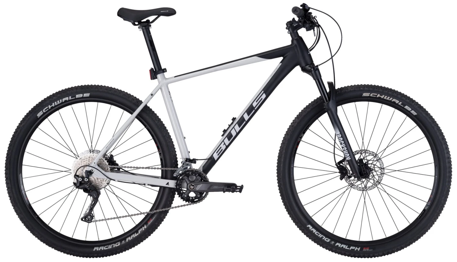 Alu t.b. Rahmen, Tapered Steuersatz, Rock Shox Judy Gold RL-R Federgabel mit Remote-Lockout und Steckachse, 22-Gang Deore XT Schaltwerk, Deore Schalthebel, Umwerfer, Kurbeln (26/36), Zahnkranz (11-42) und Kette, MT-201 Disc-Bremsen (180/180mm), WTB XC-21 Lite Disc Felgen, Bulls 3.0 Lenker und Sattelstütze (31,6mm), Racing Ralph Reifen (2,25 Zoll), Monkey-Link Halter