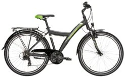 6061 Alu-Rahmen, Suntour NVX-30-DS Federgabel einstellbar, 21-Gang Tourney Schaltung mit EZ-Fire Schalthebeln, Samox STYX Kurbeln, Shimano Nabendynamo, DDM-2 Alu-Hohlkammerfelgen, Tektro MD-M280 Disc-Bremsen (160/160mm), STYX Sattelstütze, Downhill-Lenker und Vorbau, 30 Lux LED-Lampe, Standrücklicht auf dem Schutzblech, verstellbarer Hinterbauständer, Schutzbleche (hinten mit Strebe)